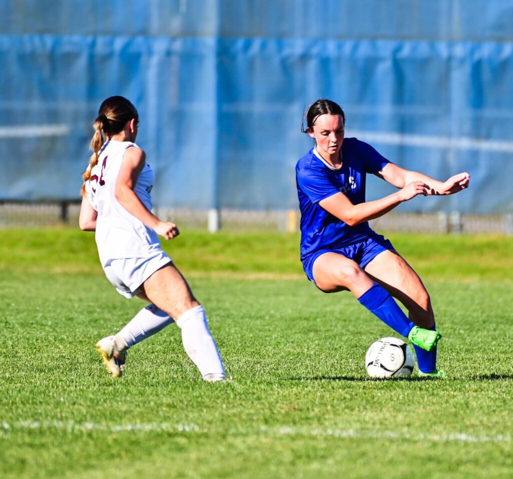 LEROY — Two goals in each half of play set the stage for No. 5 LeRoy to take full command of their Class B First Round battle with No. 12 Wellsville — two of those goals belonging to Zoey Humphrey, as the Lady Oatkan Knights delivered an early knockout punch on their home field with a 4-0 shutout of the Lady Lions to end their Fall campaign.
