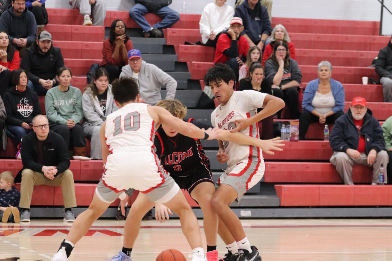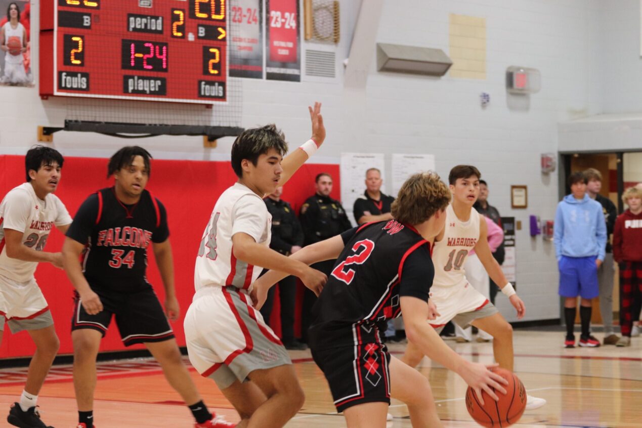 Salamanca’s Jaxon Crouse (14) looks to keep his defender out of the paint. (Salamanca Warrior Athletics)
