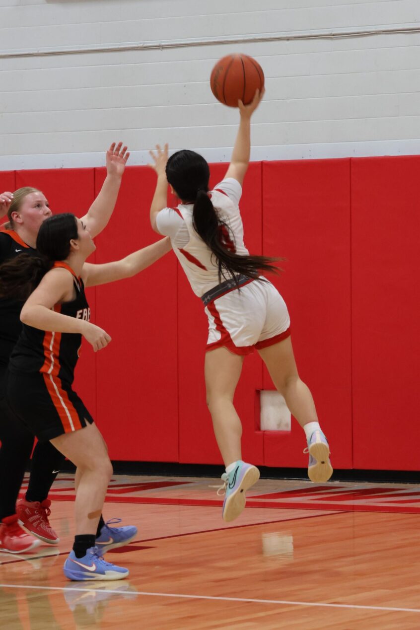 Salamanca’s Makenzie Crouse (3) goes up for a layup. Crouse finished with 12 points against Fredonia. (Salamanca Warrior Athletics)